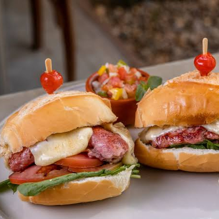 ALFACE, TOMATE, HAMBURGUER DE LINGUIÇA ARTESANAL 180G,MUSSARELA, VINAGRETE, MOLHO FLAWIONES