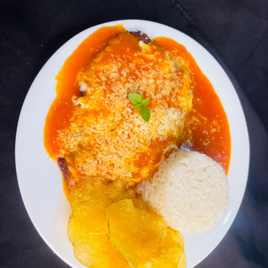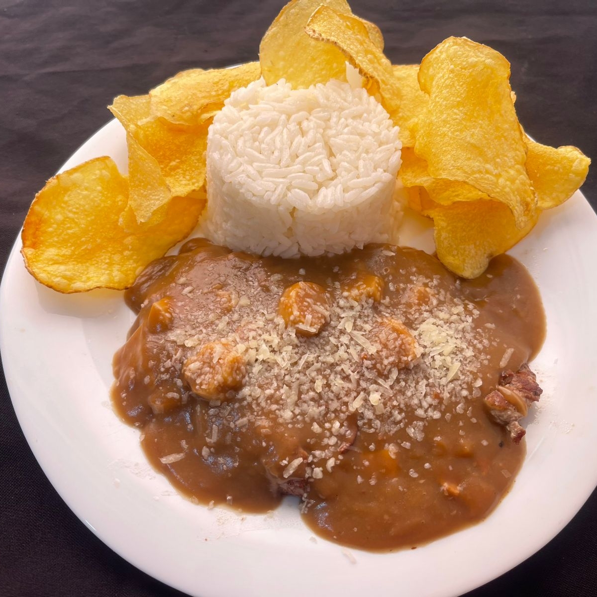 Serve de 2 a 3 pessoas. Todos acompanham arroz e batata chips.