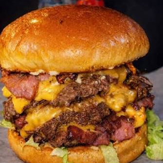 ALFACE, TOMATE, 2 HAMBURGUERES ARTESANAL 180G, BACON, OMELETE 4 QUEIJOS, CHEDDAR, CATUPIRY, MOLHO FLAWIONES