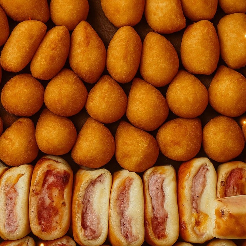 A pronta entrega temos Coxinha, Risolis, Bolinha de Queijo, outros sabores direto com a loja e sob-encomenda, salgados sequinho, e fritos na hora.