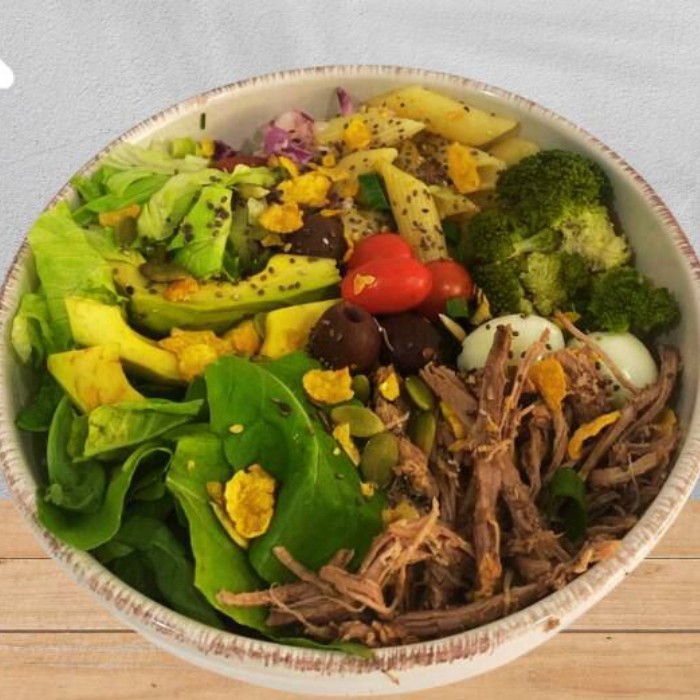 A Salada Senna traz um delicioso mix de sabores com maminha desfiada, com duas opções de carboidrato à sua escolha, acompanhada de complementos nutritivos. Com um toque fresco de mix de folhas, tomate, pepino, brócolis, vagem, cebola roxa e finalizada com granola salgada pra garantir a crocância essa salada é perfeita para quem busca uma refeição equilibrada e saborosa. Calorias: entre 320 a 620 Proteínas: entre 35g a 63g Carboidratos: entre 46g a 91g Gorduras: entre 14g a 17g