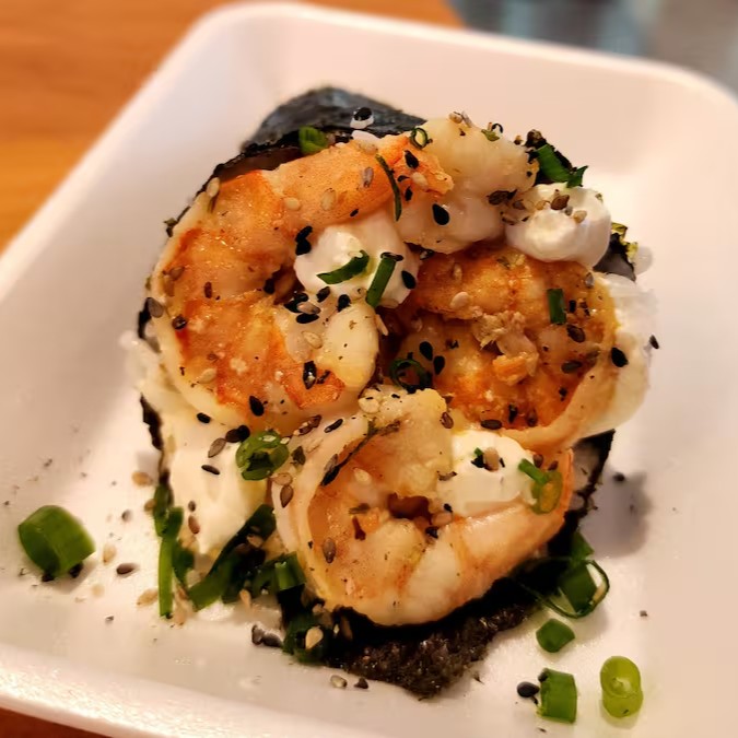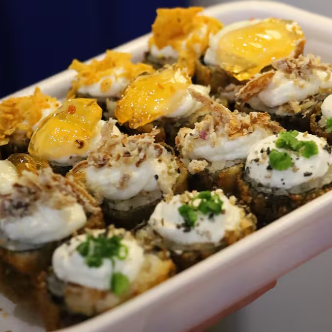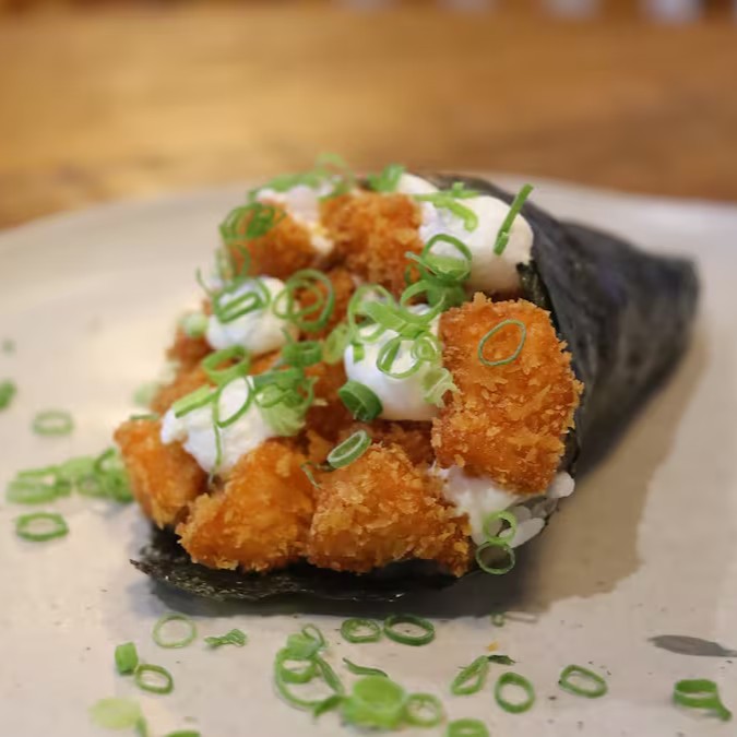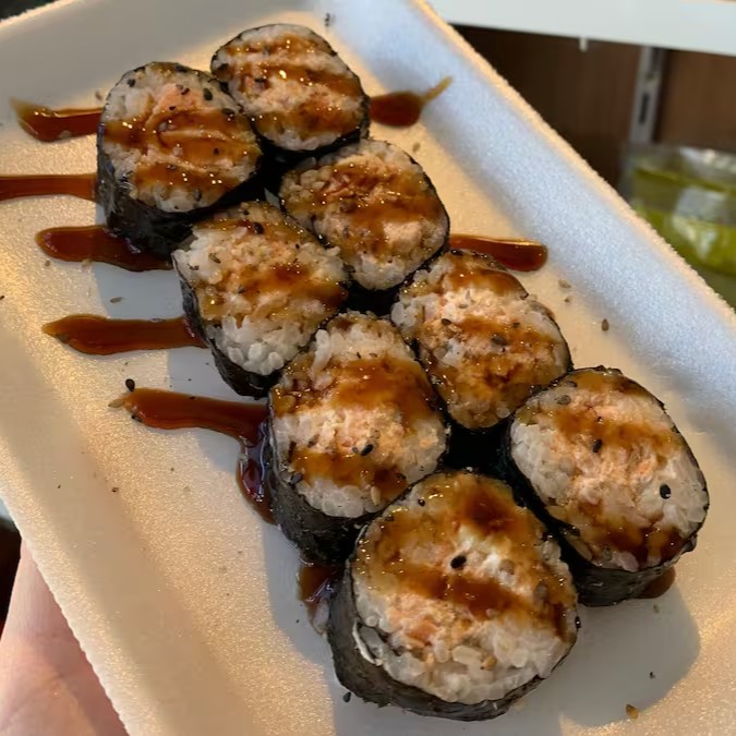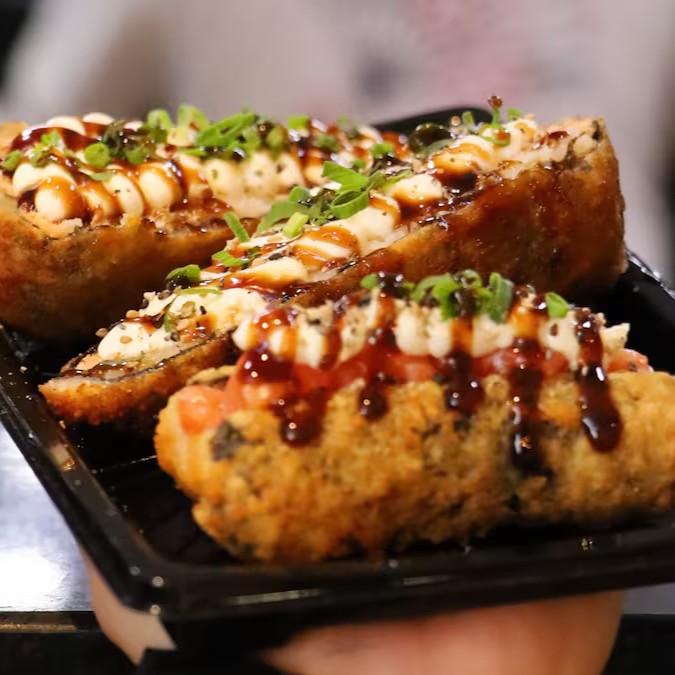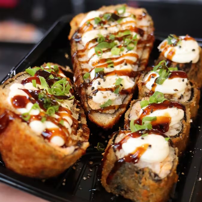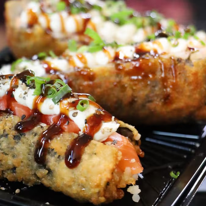 1 unidade - Sushi frito inteiro. Cortado horizontalmente e recheado com a proteína que escolheu. Finalizado com cream cheese, tarê e cebolinha por cima