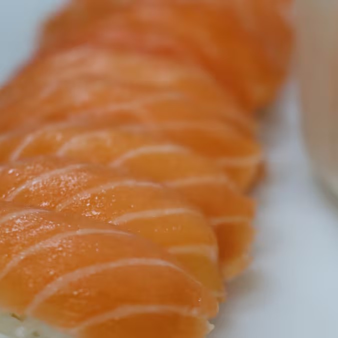 Combo só de salmão. Sashimi, jyo salmão com cream cheese e pimenta biquinho, niguiri e hossomaki. 15 peças *Quantidades limitadas por Dia*