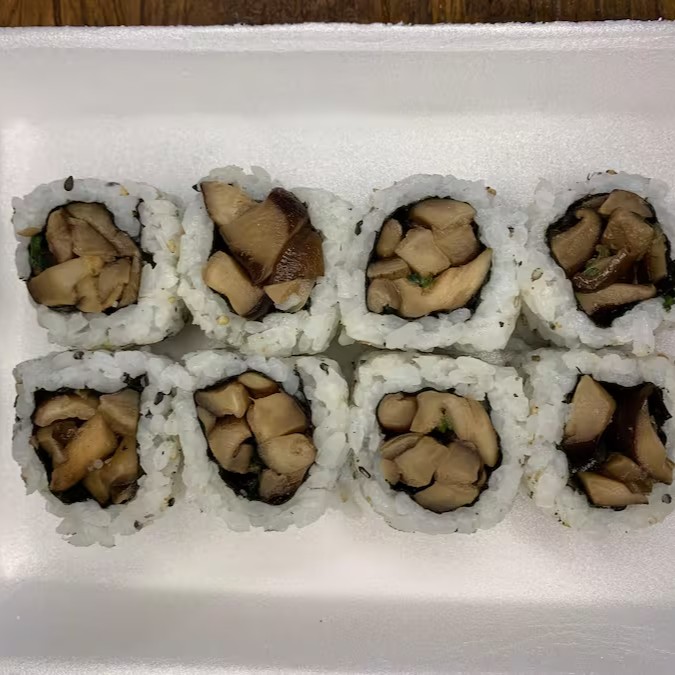 8 unidades - Futomaki é o sushi com a alga por fora, num diâmetro acima do hossomaki. Finalizado com tarê e gergelim.