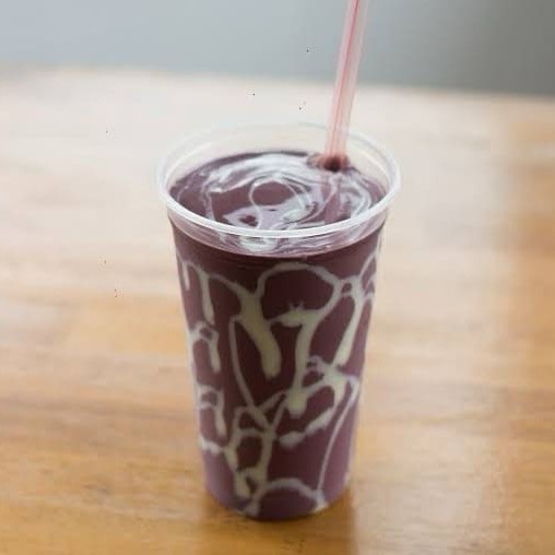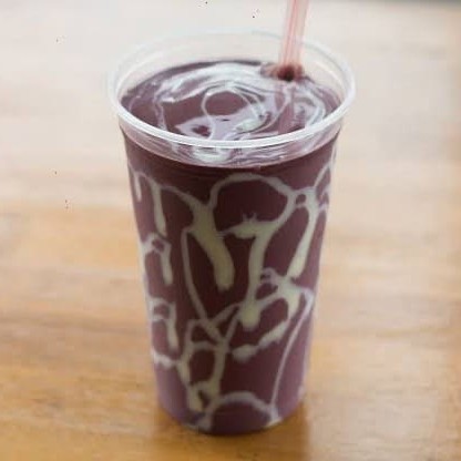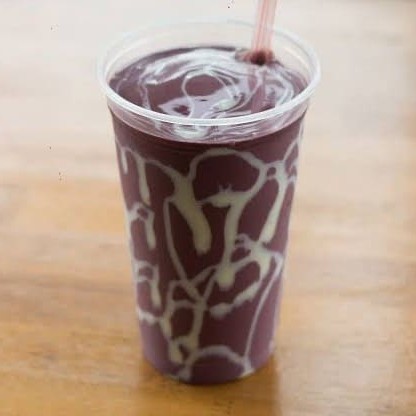 Saboroso Shake de açaí batido com leite, chá de limão ou água de coco.