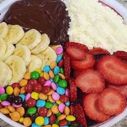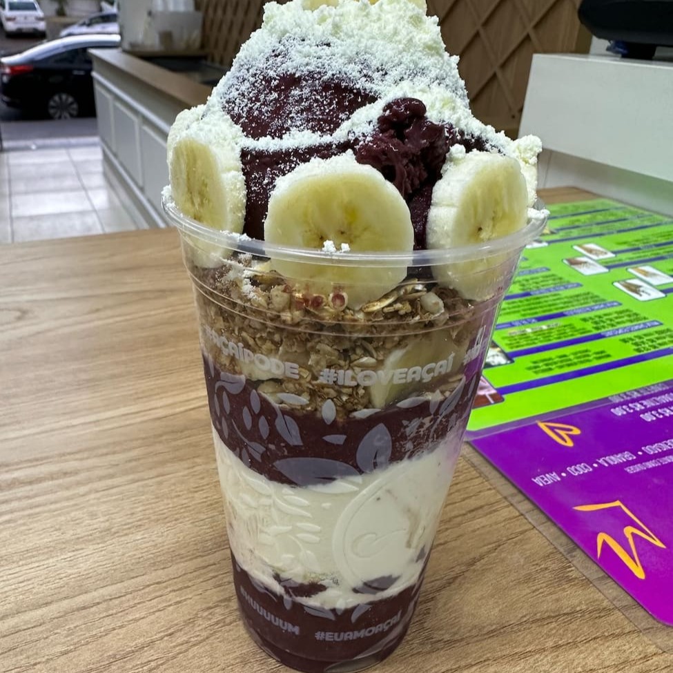 Saboroso Açaí, cupuaçu ou a mistura dos dois com acompanhamentos inclusos no preço do copo: morango, banana, leite Ninho, leite condensado, granola, coco, aveia. Adicionais disponíveis por um custo extra.