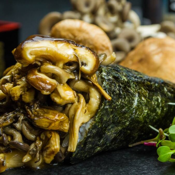 Temaki de Shimeji na manteiga, escolha com ou sem cream cheese. Aprox. 150g.