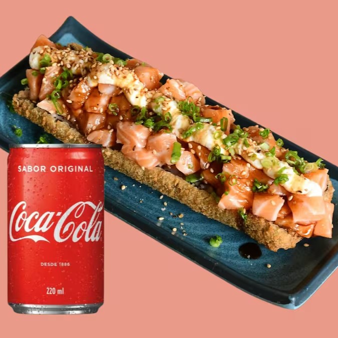 Incrível combo individual, com 1 hot canoa de salmão grelhado ou cru - o hot dog oriental e um dos mais pedidos + 1 refrigerante Coca Cola 220ml grátis (somente Coca-Cola 220ml Original, não é possível escolher outro tipo de bebida)
