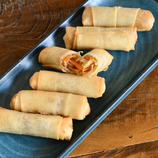 6 Unidades Do 'Harumaki de Legumes' que é uma especialidade oriental, delicada e sofisticada, que conquista paladares com sua massa fina e crocante. Este tradicional aperitivo, também conhecido como 'rolinho primavera', esconde um recheio saboroso e nutritivo de legumes frescos. É servido com um irresistível molho agridoce, criação exclusiva da nossa cozinha, que equilibra perfeitamente os sabores e intensifica a experiência gastronômica. Perfeito para iniciar sua refeição com um toque de exotismo e elegância. Desfrute desta maravilha da nossa categoria 'Grelhados e Entradas'.