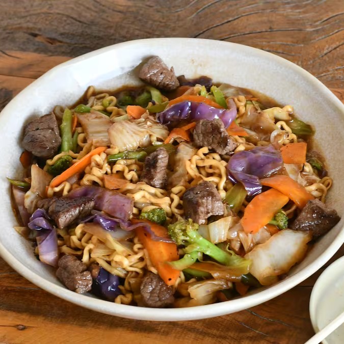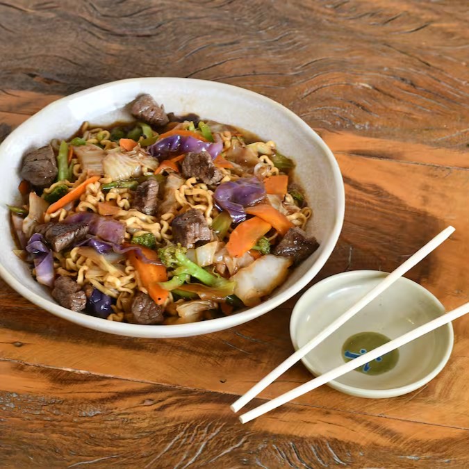Experimente o autêntico Yakisoba de Carne, uma especialidade oriental que combina sabores marcantes e ingredientes de alta qualidade. Feito com nosso macarrão artesanal e o exclusivo molho especial do Ige, esse prato é um clássico irresistível. Ele vem acompanhado de um delicioso mix de legumes fresquinhos e alcatra bovina em tiras, garantindo o equilíbrio perfeito entre textura e sabor.