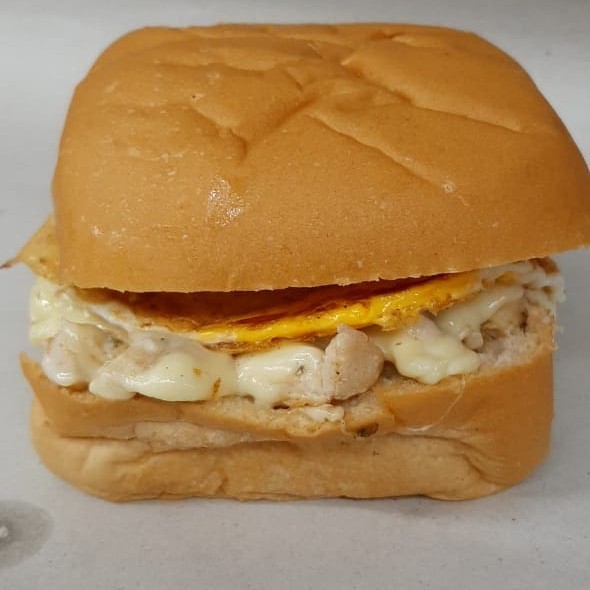 Suculento Filé de frango em cubos temperados 120 grs, queijo mussarela e ovo. Obs : acompanha sache de cat-chup ,maionese tradicional (industrializada) e maionese de alho gourmet.