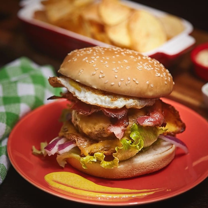 Blend da casa 100% fraldinha de angus grelhado no broiler , queijo cheddar, ovo e pão. Acompanha: batata frita artesanal Chips ou Palito