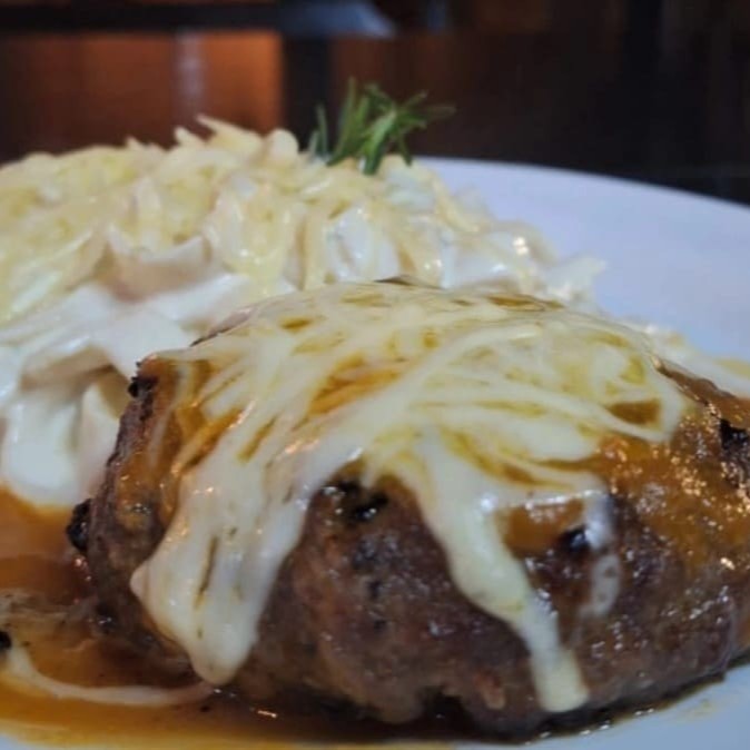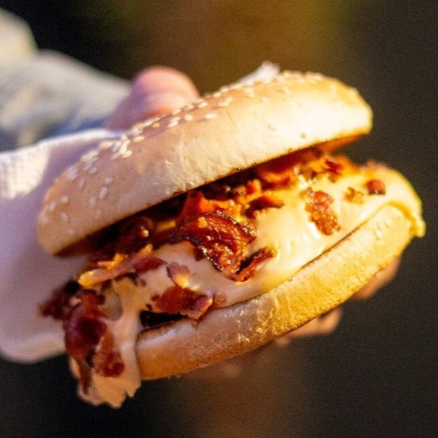 Blend da casa 100% fraldinha de angus com muuuuito creme de queijo (parmesão e cheddar) e crispy de bacon. É de comer rezando!
