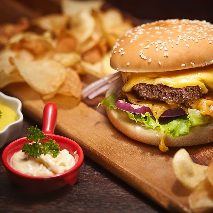 Blend da casa 100% fraldinha de angus grelhado no broiler , queijo cheddar e pão. Acompanha: batata frita artesanal Chips ou Palito