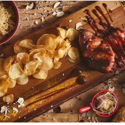 Acompanhamentos: Arroz Biro Biro ( Arroz Branco , Bacon e Salsa) ou Arroz Branco + Farofa Artesanal , batata Rústica Chips, Canoa ou Palito + 2 Molhos do Chef e Couvert de pães ! e Salada ou Legumes Grelhados com Ervas