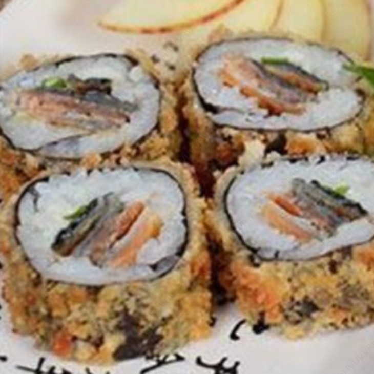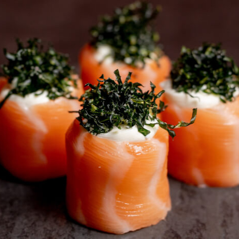 Enrolado em forma de cone,arroz,salmão grelhado,cream chesse e cebolinha!