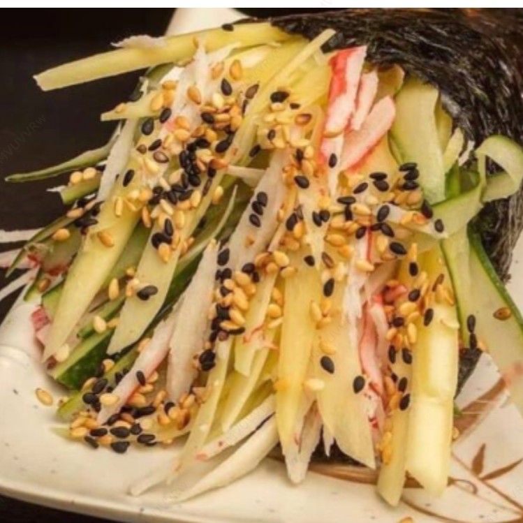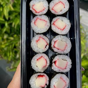 Enrolado em forma de cone,arroz,kani kama,cream chesse e cebolinha