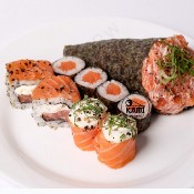 1 Temaki salmão, 2 joe de salmão, 2 uramaki salmão, 4 hossomaki de salmão