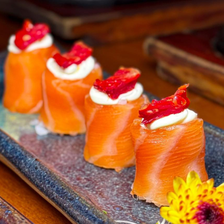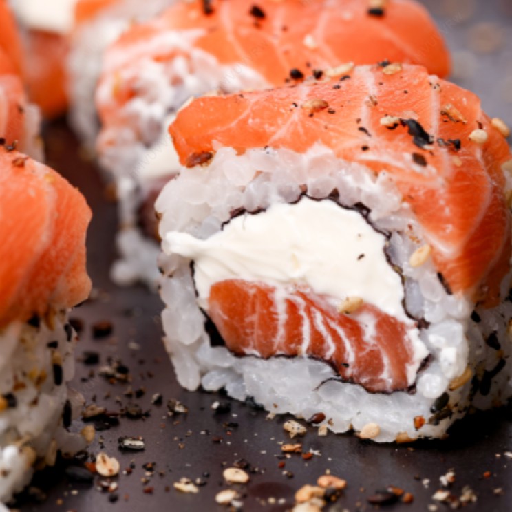4 sashimi de salmão 4 hossomaki de salmão 2 joe de salmão 2 uramaki Philadelphia