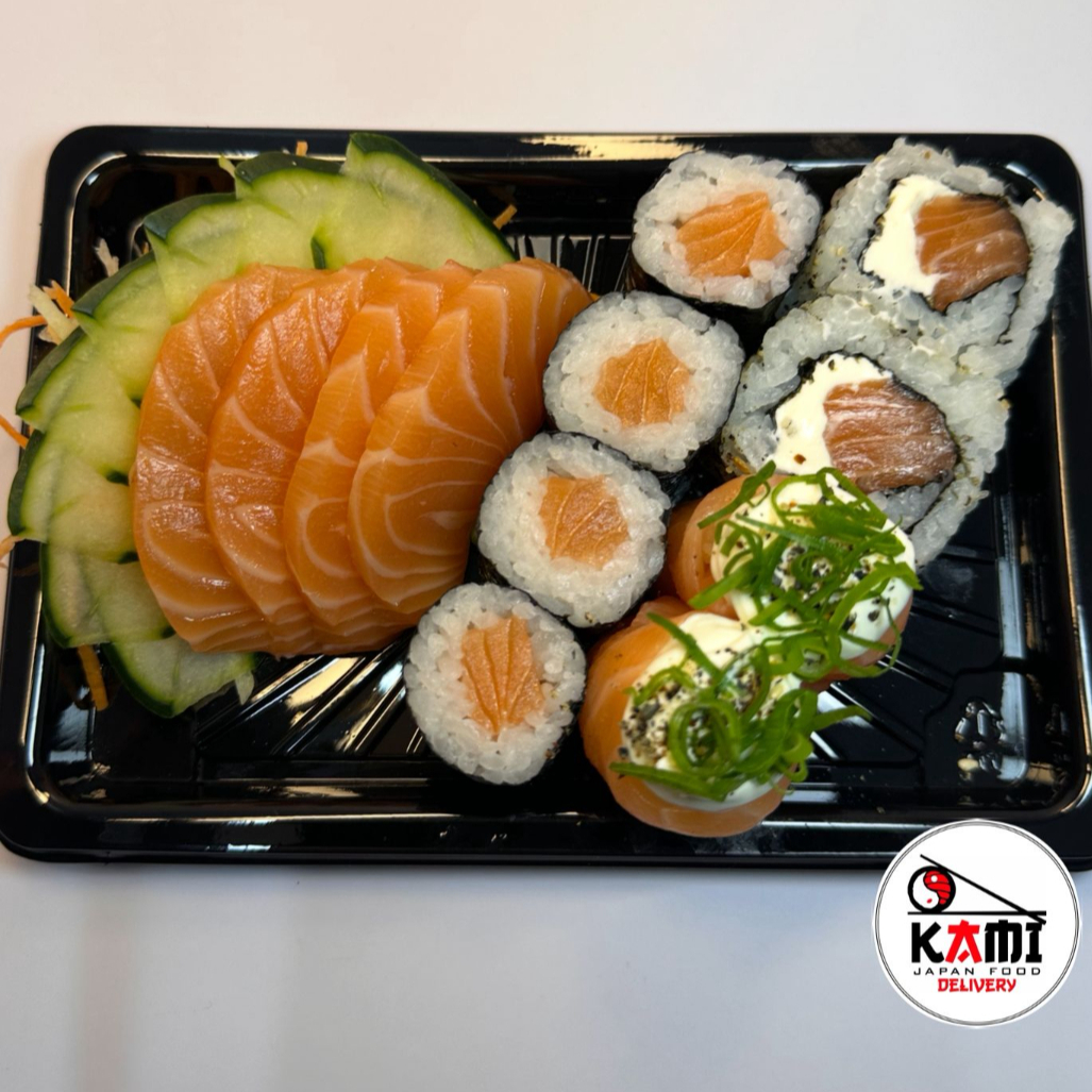2 temaki de salmão 4 niguiri de salmão 4 niguiri skin 4 joy de salmão 4 uramaki Philadelphia 4 hossomaki de salmão 4 hossomaki de pepino