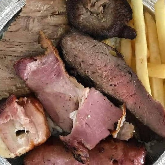 Alcatra Fraudinha Alcatra ao alho medalhao de frango copa lombo linguiça arroz feijao farofa batata frita