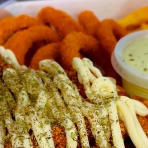 Nessa porção acompanha 12un de anéis de cebola sequinhos. Acompanha ketchup