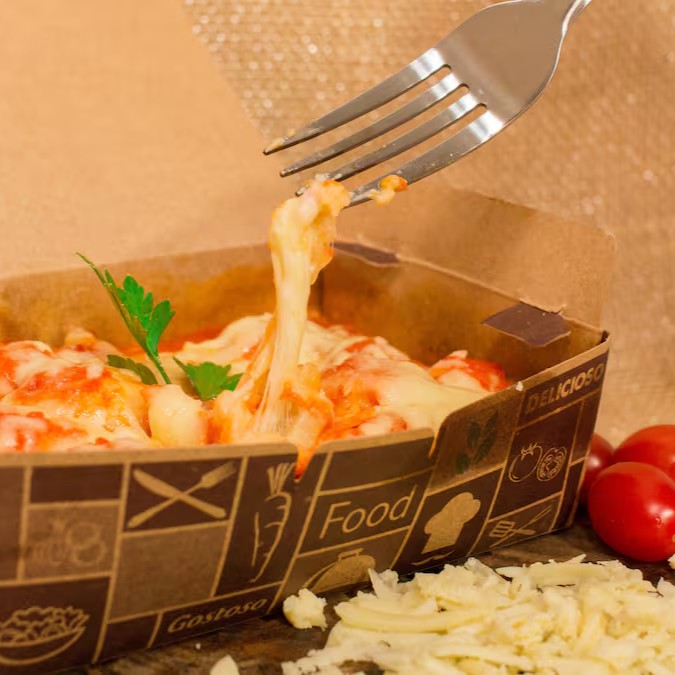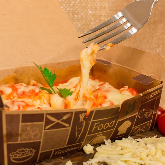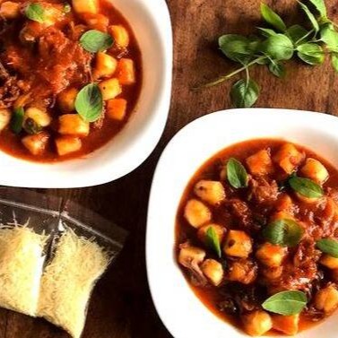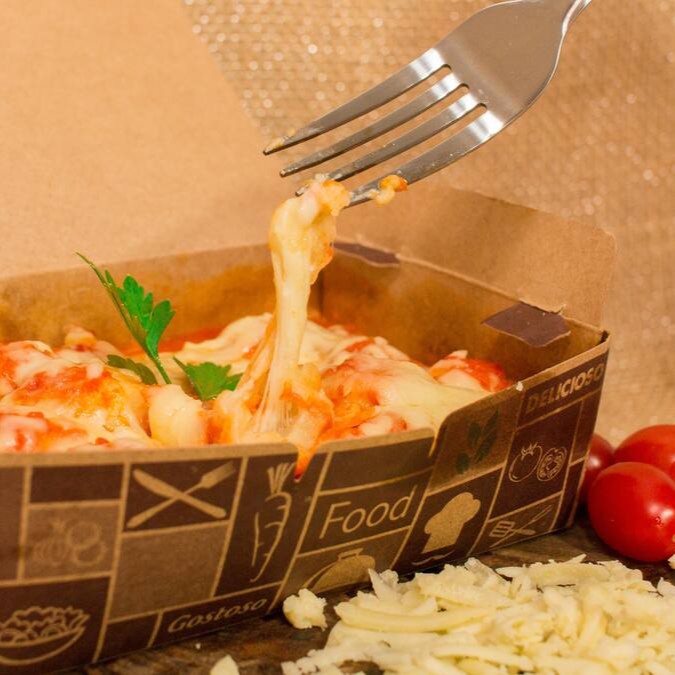 1 box de 500 g de Nhoque massa de Batata recheado com Muçarela ao molho sugo + parmesão por cima.