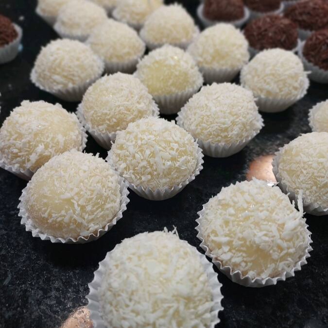 Maravilhoso brigadeiro de Coco, enrolado no coco ralado. Serve 1 pessoa (30g)