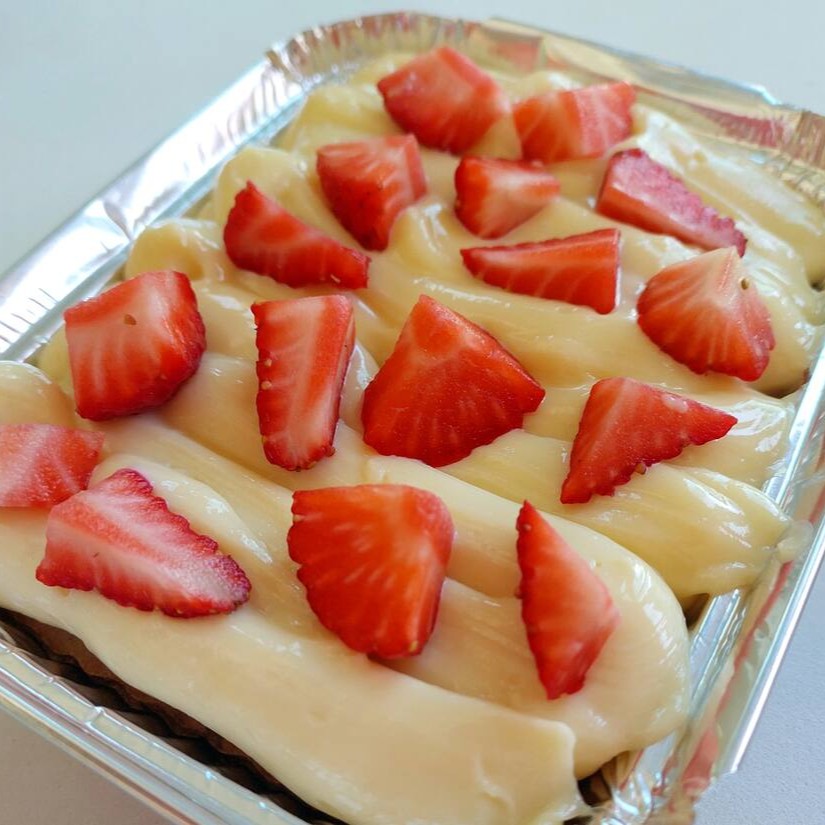 Brownie de chocolate nobre, molhadinho com casquinha crocante, finalizado com brigadeiro de Ninho e morangos fresquinhos cortados. Serve 1 pessoa.
