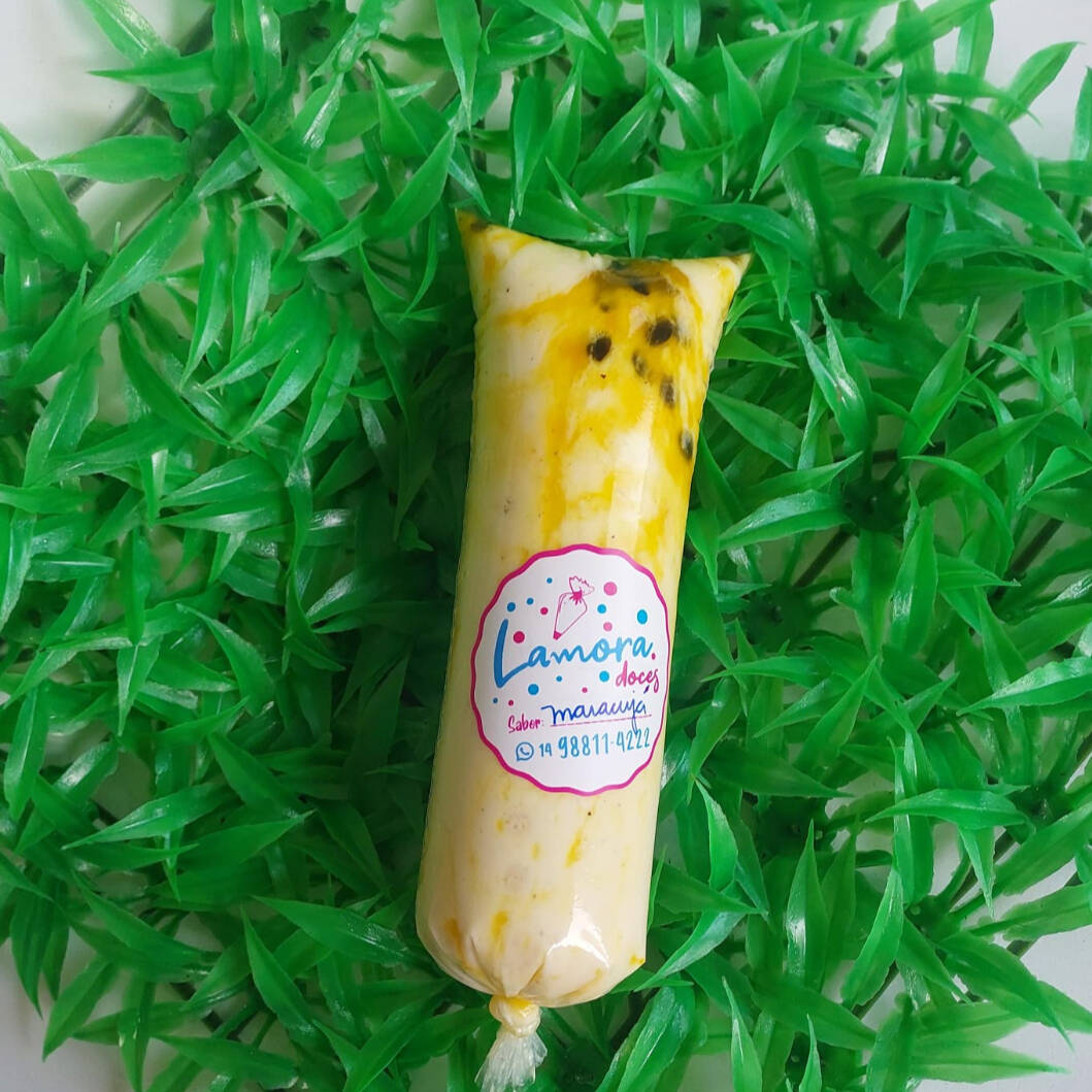 Venha se refrescar com nosso chupchup gourmet com base cremosa de maracujá e trufado com geleia caseira de maracujá! Serve 1 pessoa.