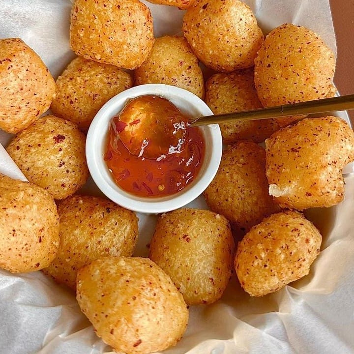 Cubinhos crocantes de tapioca com queijo coalho dourado, acompanhado de geleia de pimenta levemente picante. Uma explosão de sabor agridoce que vai te conquistar na primeira mordida!