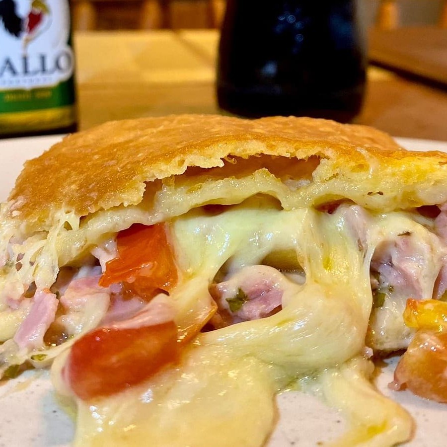 Deliciosa pizza frita de presunto e mussarela