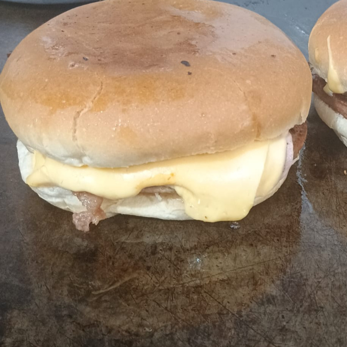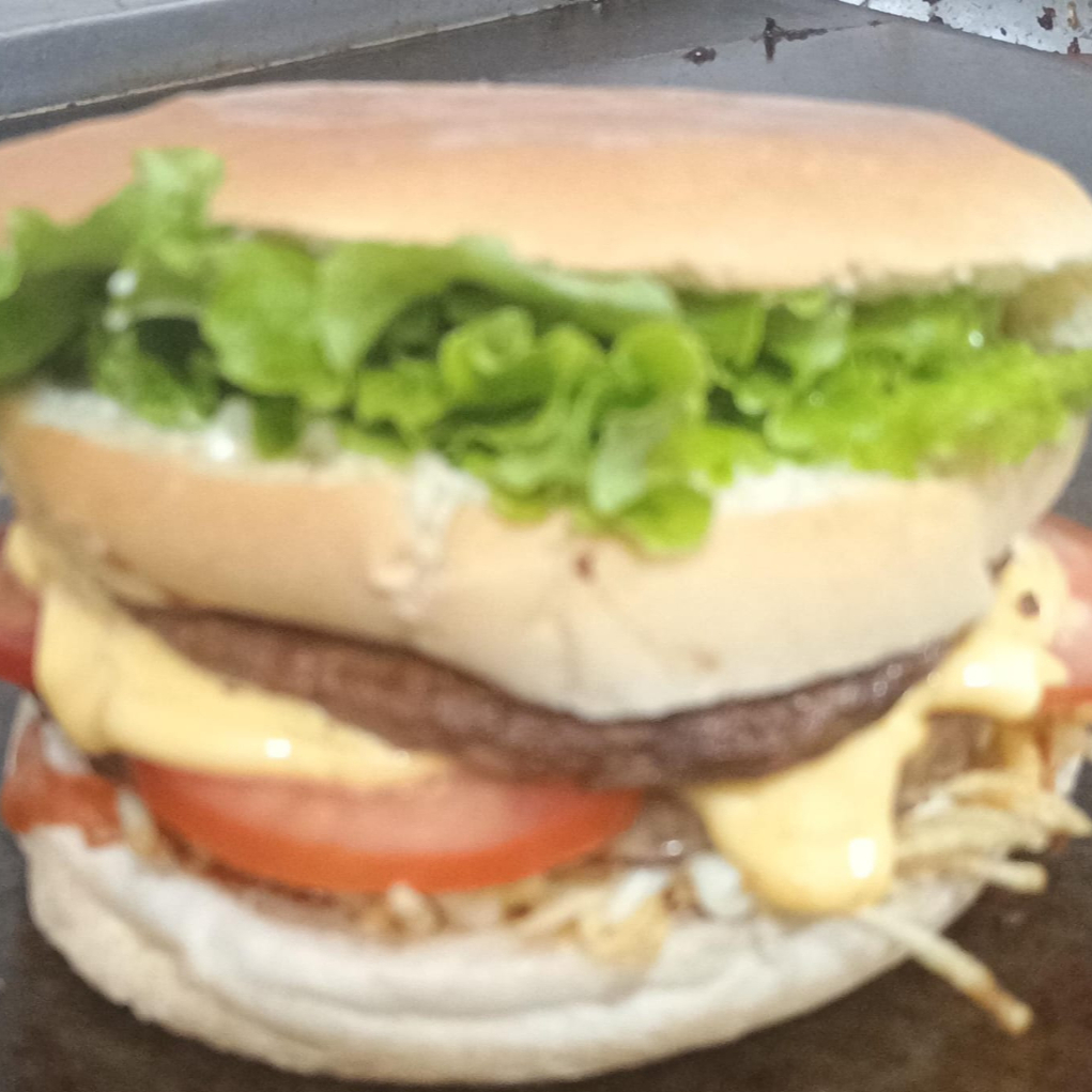 Pão de hambúrguer 100 GRAMAS, hambúrguer,100 GRAMAS queijo, ovo frito e maionese.