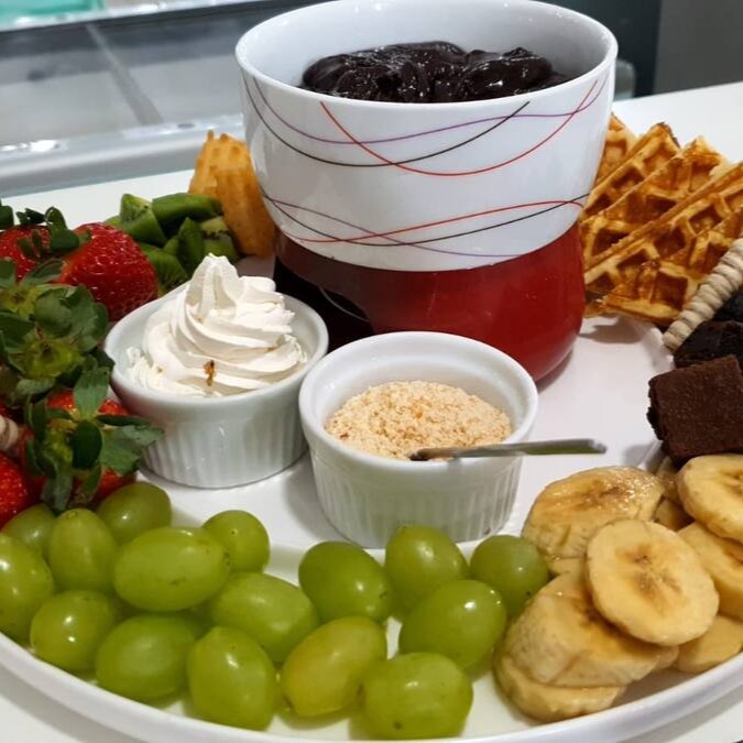 1 fruta (morango ou banana) + 2 acompanhamentos para escolher nos complementos