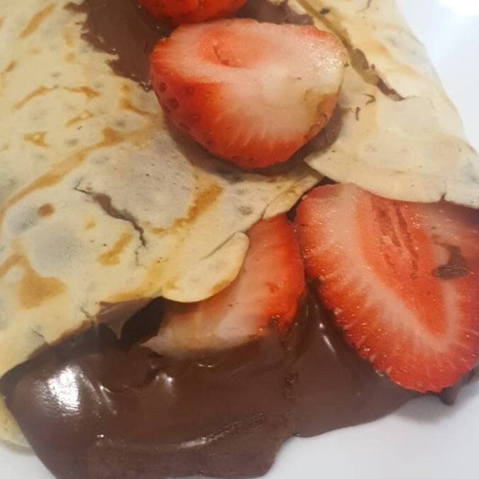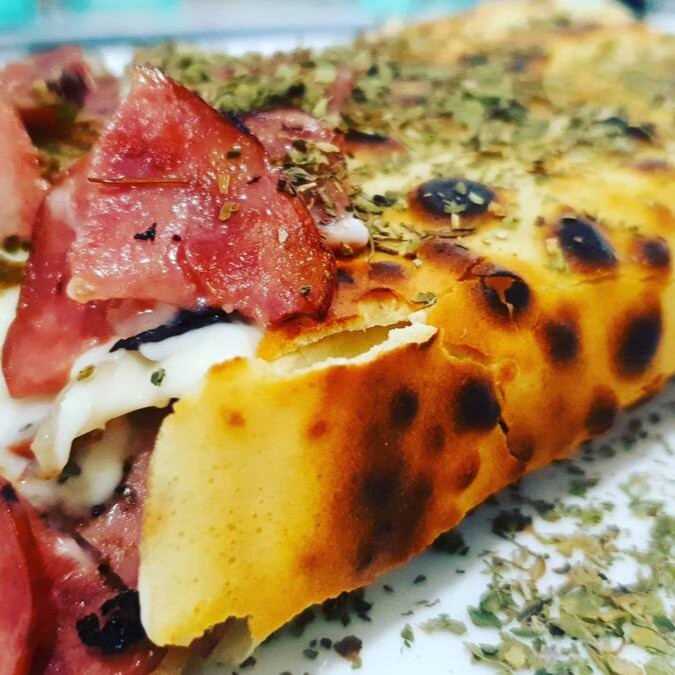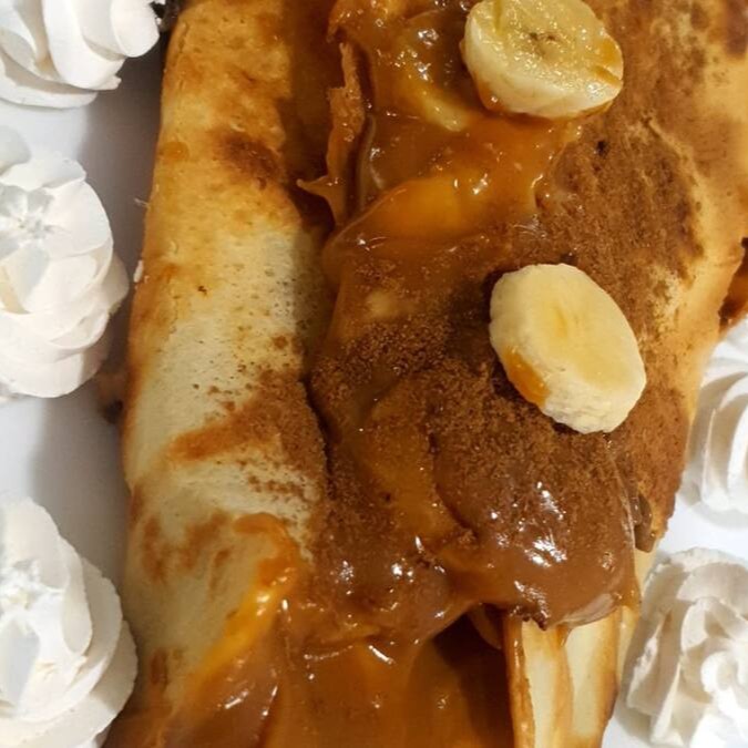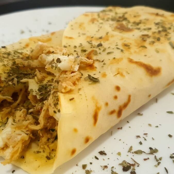 Crepe francês artesanal recheado de mussarela, tomate e oregano