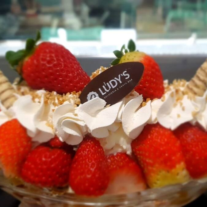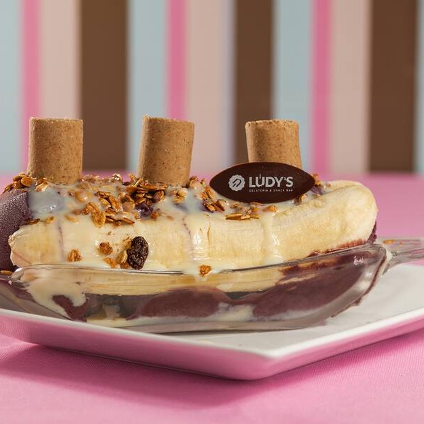 7 bolas grandes de açaí premium Ludy's, morango, banana, kiwi e morango + 4 complementos (para escolher)
