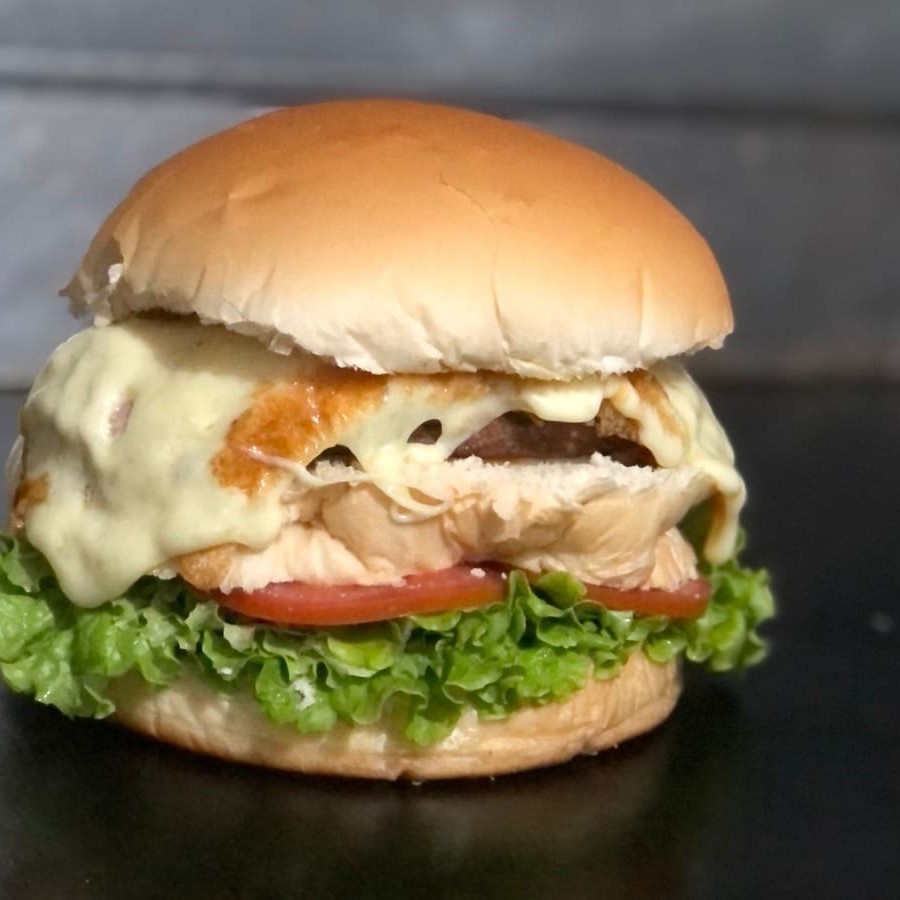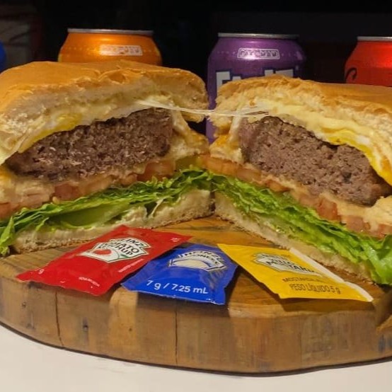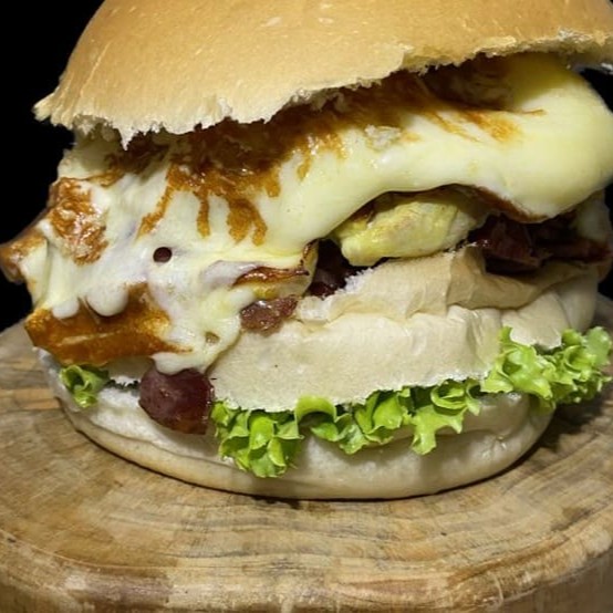 Pao de brioche, Hamburguer Artesanal, Queijo, Ovo e salada