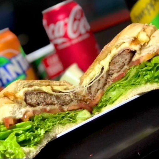 Pão, hambúrguer, bacon, mussarela e salada+ coca cola 350ml