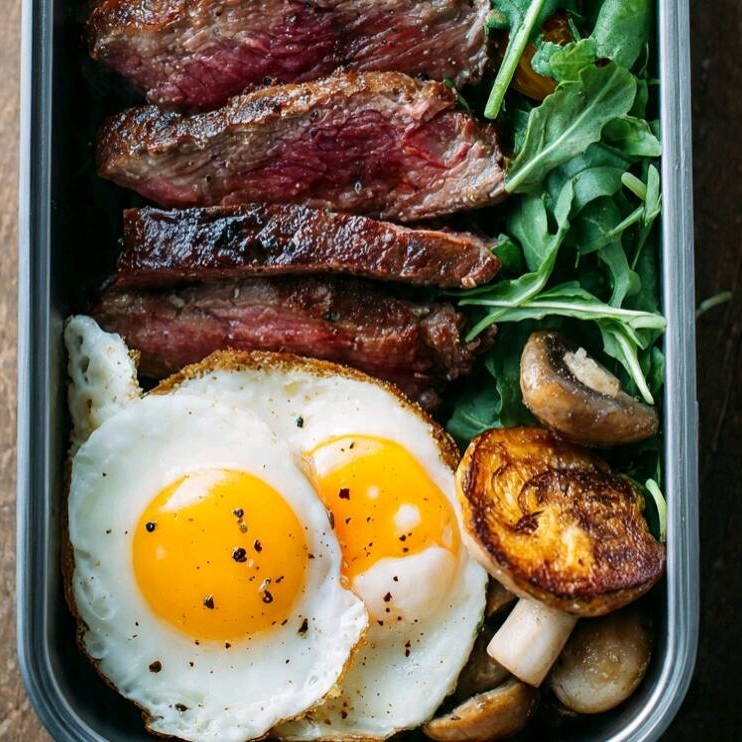 Arroz, feijão, bifes a cavalo, batata frita e salada.