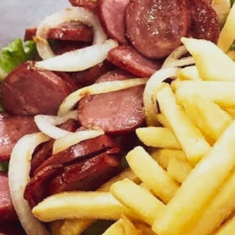ARROZ, FEIJÃO, CALABRESA ACEBOLADA, BATATA FRITA E SALADA