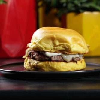 Pão de brioche,hamburguer 150 gramas,mussarela e maionese