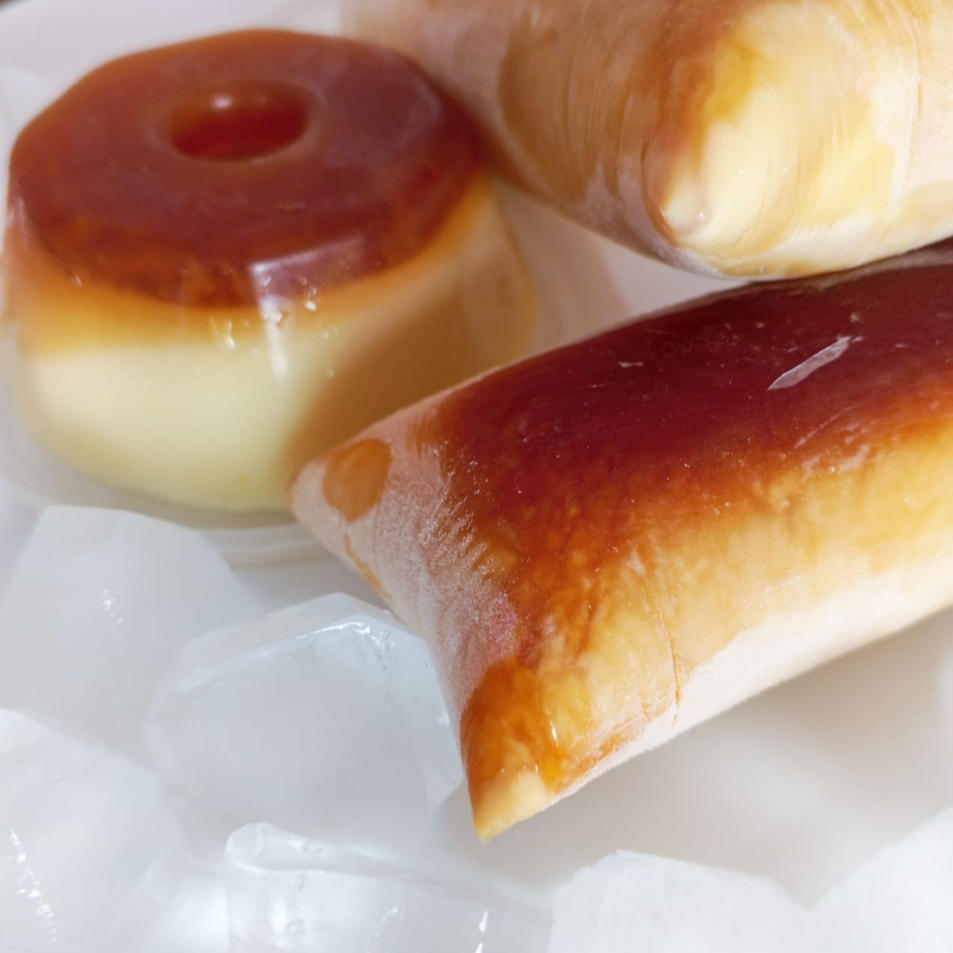 3 unidades de geladinho artesanal de Pudim. Aprox 150g cada.