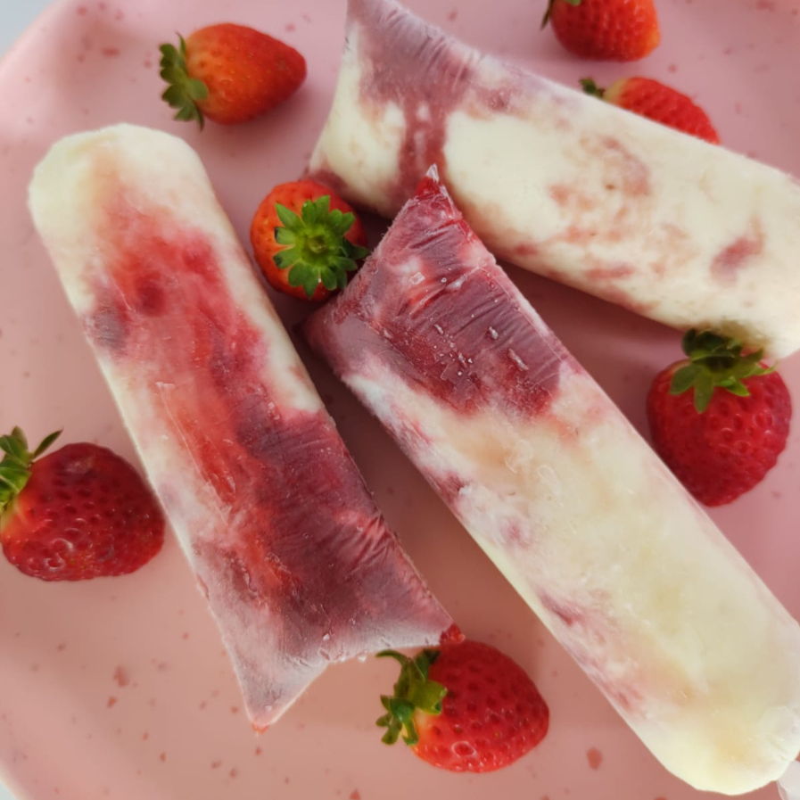2 geladinhos de cada sabor: Pudim, torta de limão e Ninho com morango