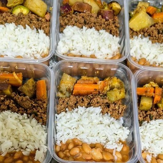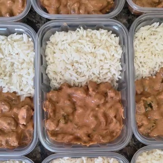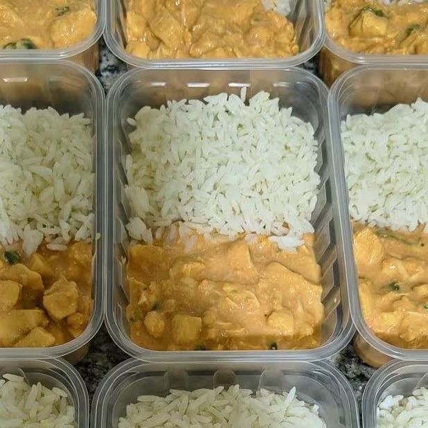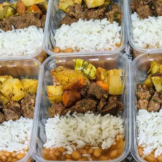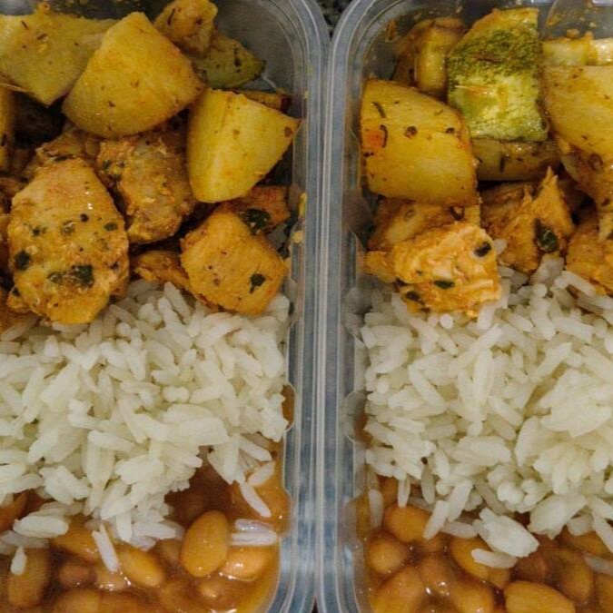 Arroz, Feijão, Frango Em Cubos E Mix De Legumes