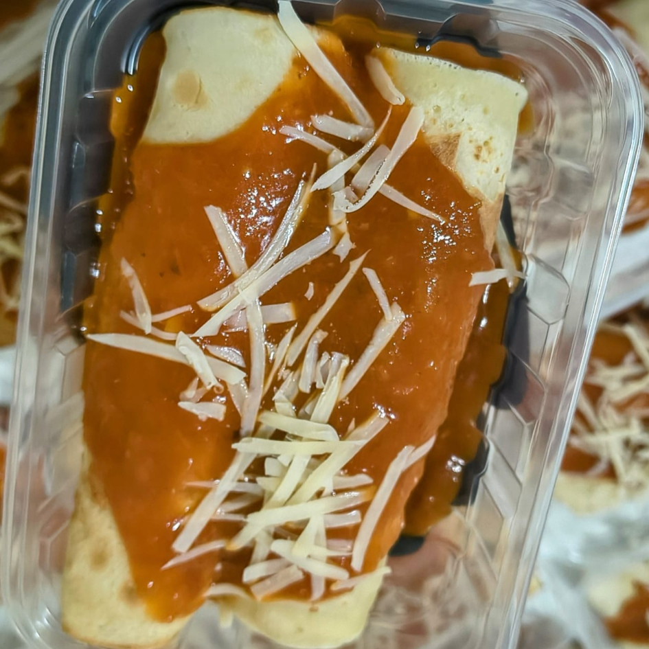 Panqueca De Frango Desfiado Ao Molho Vermelho E Parmesão Ralado