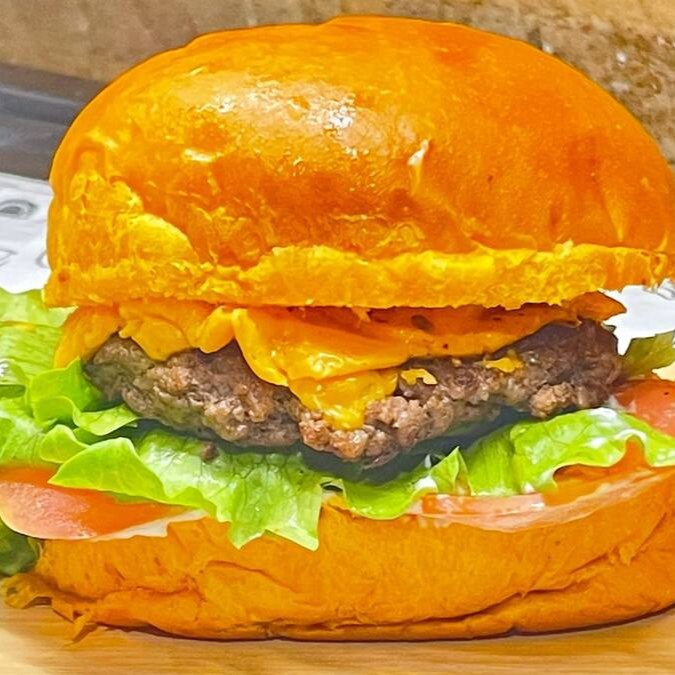 Lanche sensacional com Pão de brioche, maionese da casa, hambúrguer 150g, queijo cheddar