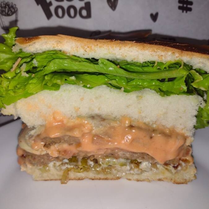(Delicioso Lanche com 2 Hambúrguer, queijo, tomate, alface e maionese)