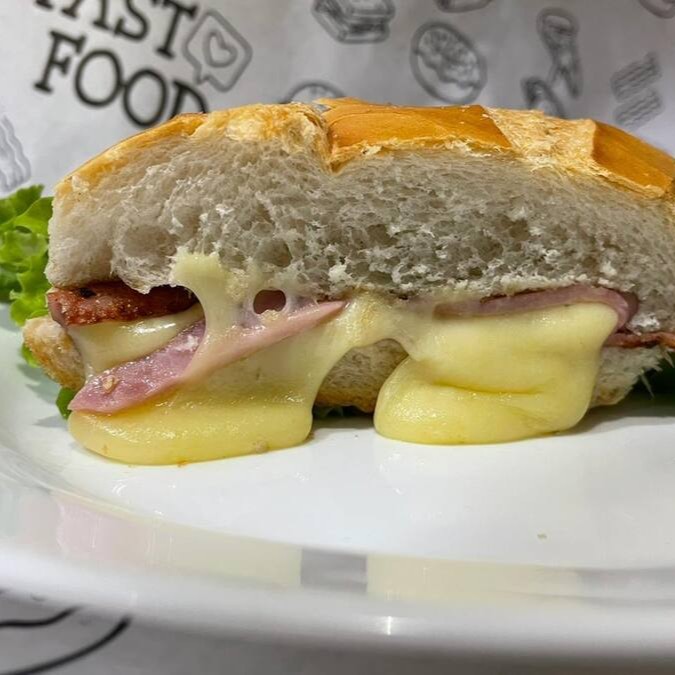 (Delicioso Lanche com Presunto, queijo, ovo, tomate, maionese e alface)