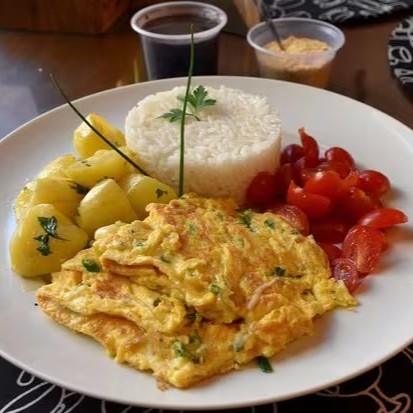 Arroz, feijão, omelete, farofa e refogado do Dia.