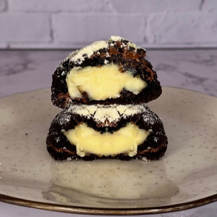 Feito com nossa massa de cacau Black da Callebaut, que deixa o cookie extremamente crocante por fora e úmido por dentro, gotas de chocolate branco e recheado com o melhor doce de leite do mundo. Peso: 110g Grau de doçura 4/5